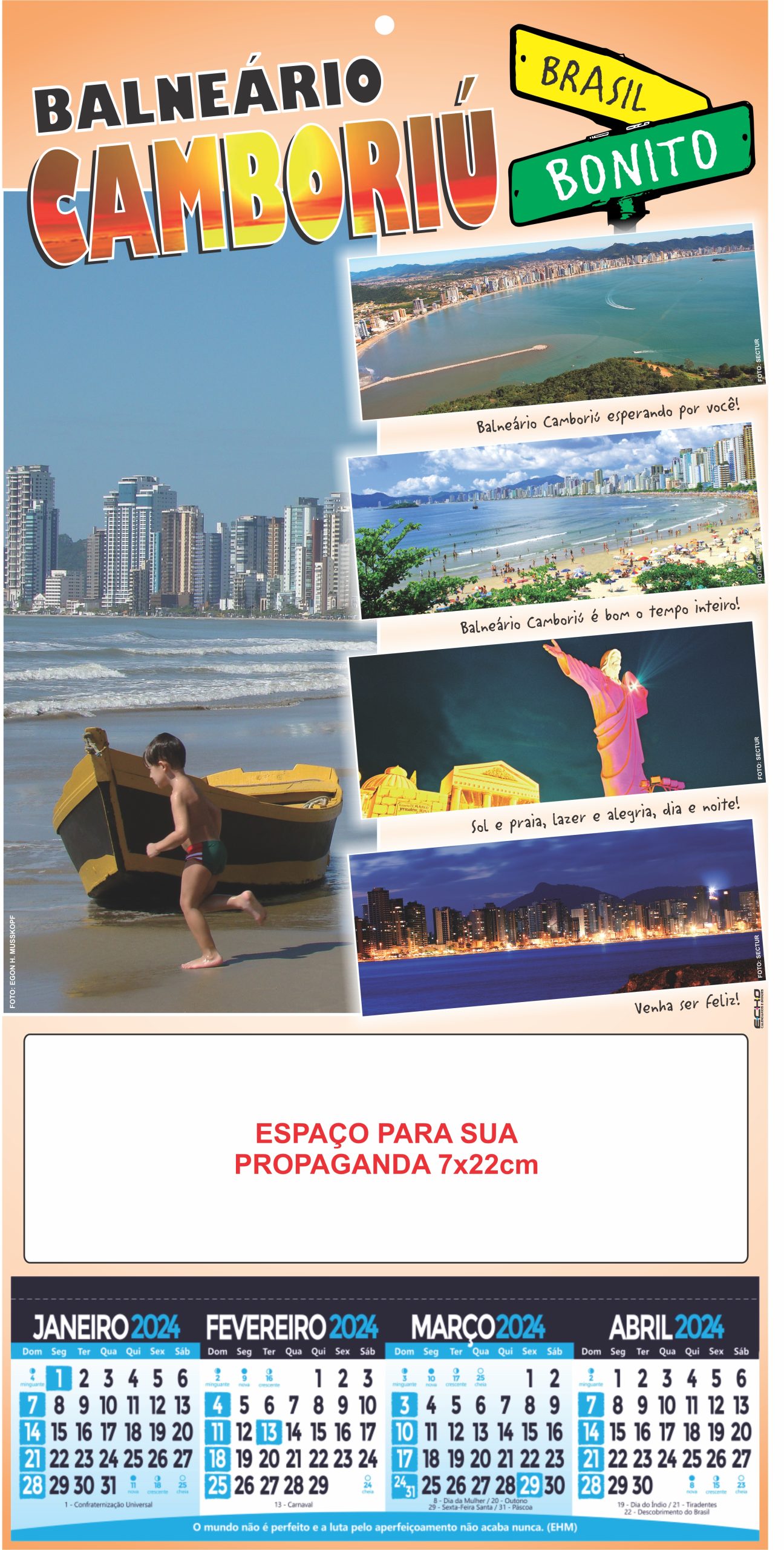 Base em Duplex 250g no tamanho 23,5×47,5cm. Acompanha o bloco com calendário e o espaço para a propaganda no tamanho de 7x22cm.