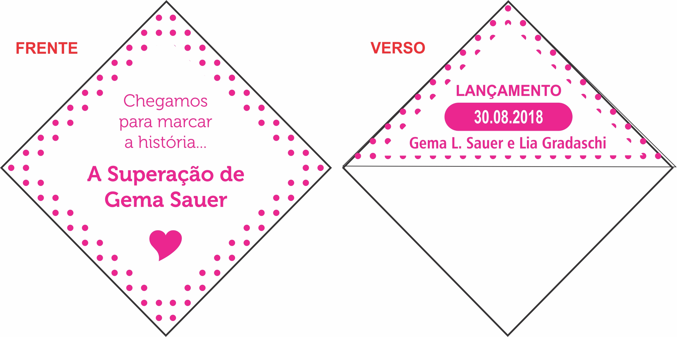 Marcador de páginas em papel couchê brilho 170g, colorido, com espaço para a propaganda na frente no tamanho 6,5×6,5cm e no verso em formato triangular no tamanho 6,5×3,2cm; Tamanho montado: 6,5×6,5cm;